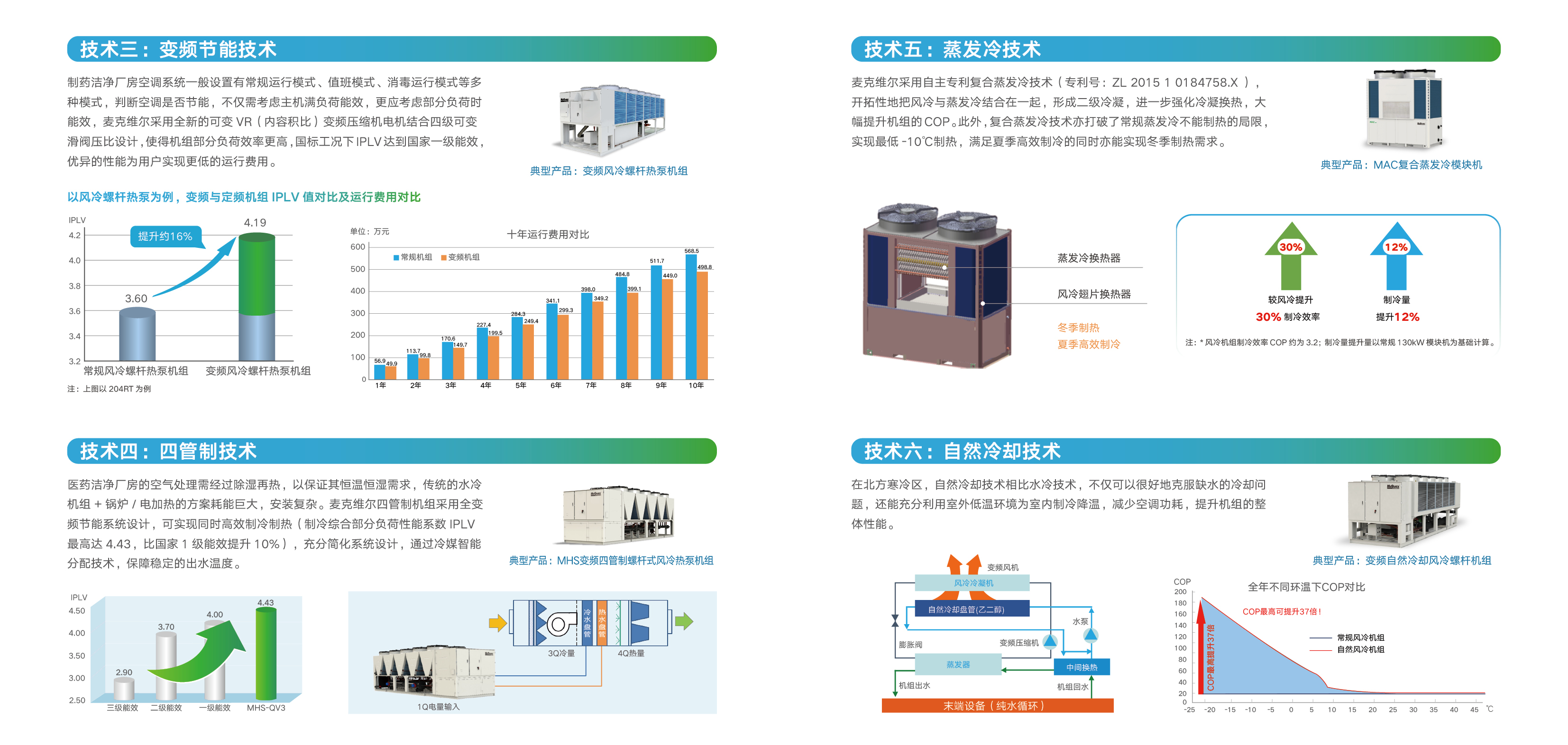麥克維爾作為專注工業領域提供完善的空調冷熱源和空氣凈化系統方案的領導者,一直致力于對制藥空調系統的思考與研發,通過對制藥企業空調系統的技術研究,進一步明確制藥空調系統的重要性,開發出一系列綠色、高效、凈化型產品,助力建造符合GMP規定的高效制藥廠房,以保障制藥行業的持續、穩定、綠色發展。