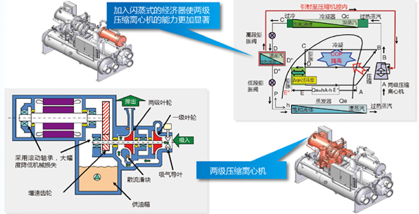 WTCC兩級壓縮離心式機組工作原理: