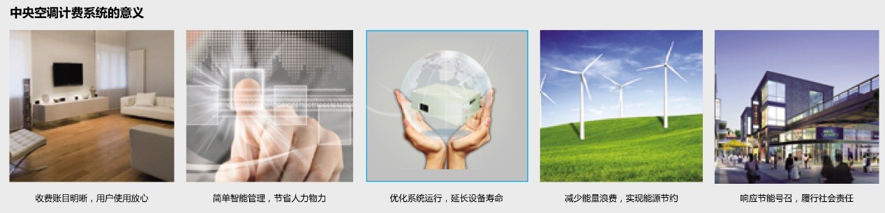 中央空調計費系統是一種智能化的計量及收費方式。通過使用能量表或時間型計費溫控器來準確計量用戶使用的制冷或制熱能量,計算并顯示累計能量值,同時通過通訊方式傳輸給物業管理公司或收費部門的計算機。由計算機自動計算出每個用戶使用能量的多少及所對應的費用,并自動打印出收費單據。用戶根據此單據向物業或相關部門繳費,實現“多用多出錢,少用少出錢”的交費目的,避免出現費用公攤不合理的收費現象。