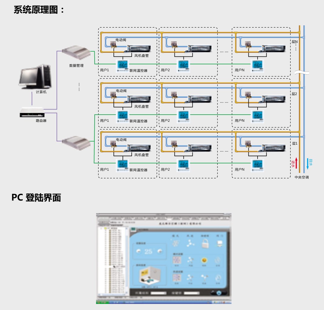 聯網控制系統是對建筑內所有空調末端設備采用計算機控制技術進行全面有效的監控和管理,確保建筑內所有空調末端設備處于高效節能、安全可靠的運行狀態,從而更好地發揮建筑物的潛能。