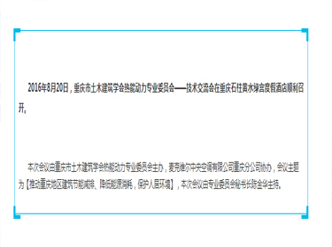 2016年8月20日,重慶市土木建筑學會熱能動力專業委員會——技術交流會在重慶石柱黃水綠宮度假酒店順利召開。 本次會議由重慶市土木建筑學會熱能動力專業委員會主辦,麥克維爾中央空調有限公司重慶分公司協辦,會議主題為【推動重慶地區建筑節能減排、降低能源...