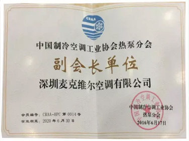 麥克維爾當選中國制冷空調工業協會熱泵分會副會長單位...