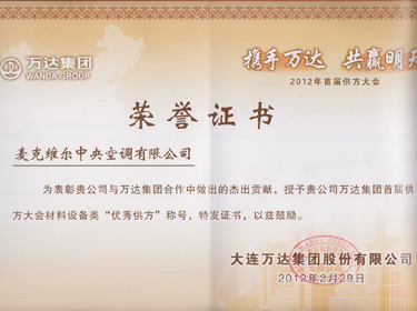 萬達集團授麥克維爾優(yōu)秀供方稱號