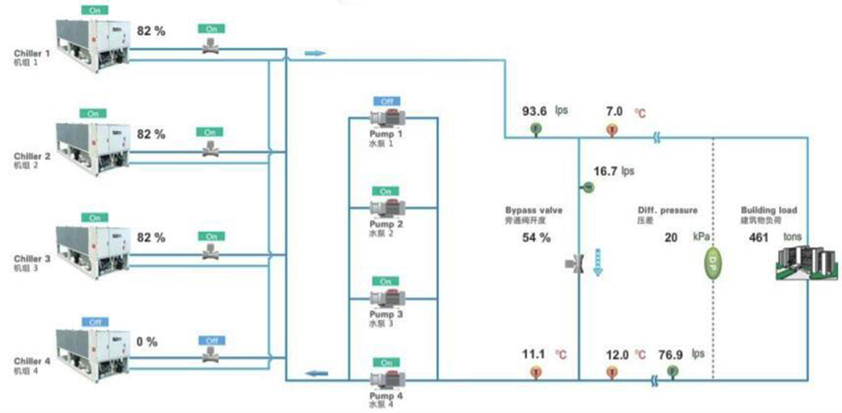 根據(jù)末端負(fù)荷變化,實時優(yōu)化系統(tǒng)的運行,實現(xiàn)節(jié)能