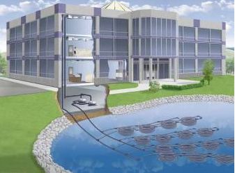 將換熱管路安裝于靠近建筑物的湖水、池塘、河流等地表水中,通過地表水提供建筑物熱量或散熱。湖水的深度及面積非常重要,必須核定是否滿足建筑物負荷的需求。根據換熱的形式該系統分為取水式系統和拋管式系統。取水式系統是從地表(湖水、池塘、河流等)中抽取水后經過換熱器進行熱交換的系統;拋管式系統是以水為介質通過閉式循環的換熱盤管與地表水(湖水、池塘、河流等)換熱來實現能量轉移。
